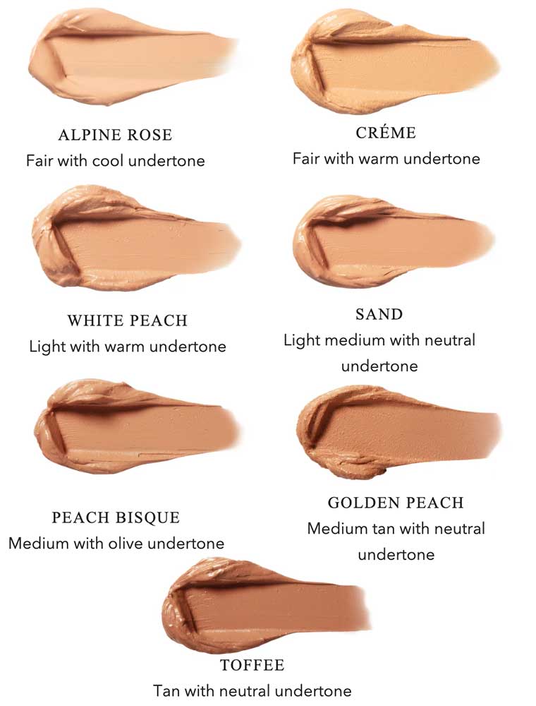 Creamy, nourishing foundation glides on effortlessly and blends seamlessly for a soft, natural looking finish. Gorgeous pigment from antioxidant-rich fruit and cocoa beans give this foundation buildable medium to full coverage, that lasts all day. Rich and creamy avocado butter pairs with rice powder to deliver a soft satin finish, while botanicals of chamomile and calendula calm and purify your skin for comfortable all-day wear.